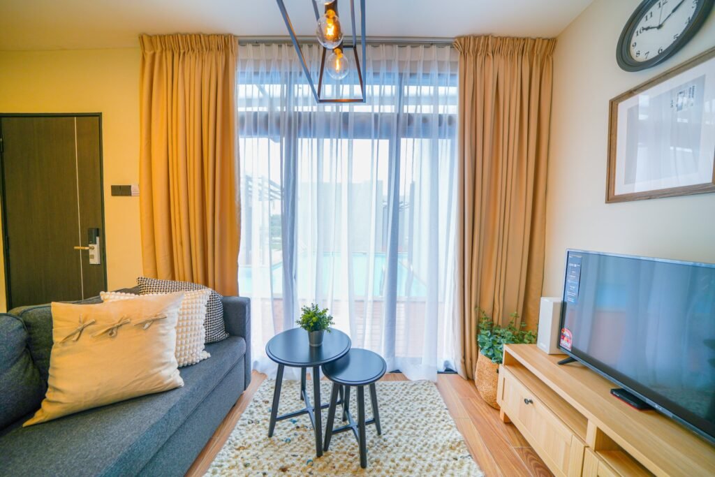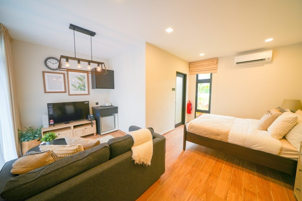 Our Hangouts Studio Suite in Lofoten Island is a true escape. With a cozy interior designed by IKEA Malaysia, full pantry amenities, a spacious room that can fit 4 guests, a beautiful bathroom, TV living hall, and a sofa bed that can accommodate 4 pax, you’ll feel like you’re in your own private cabin. And when you want to unwind, you can jump straight into the plunge pool and enjoy the serene surroundings.