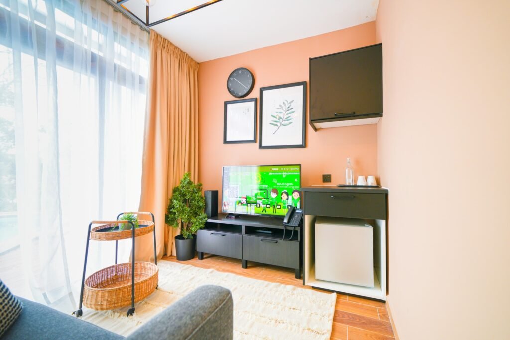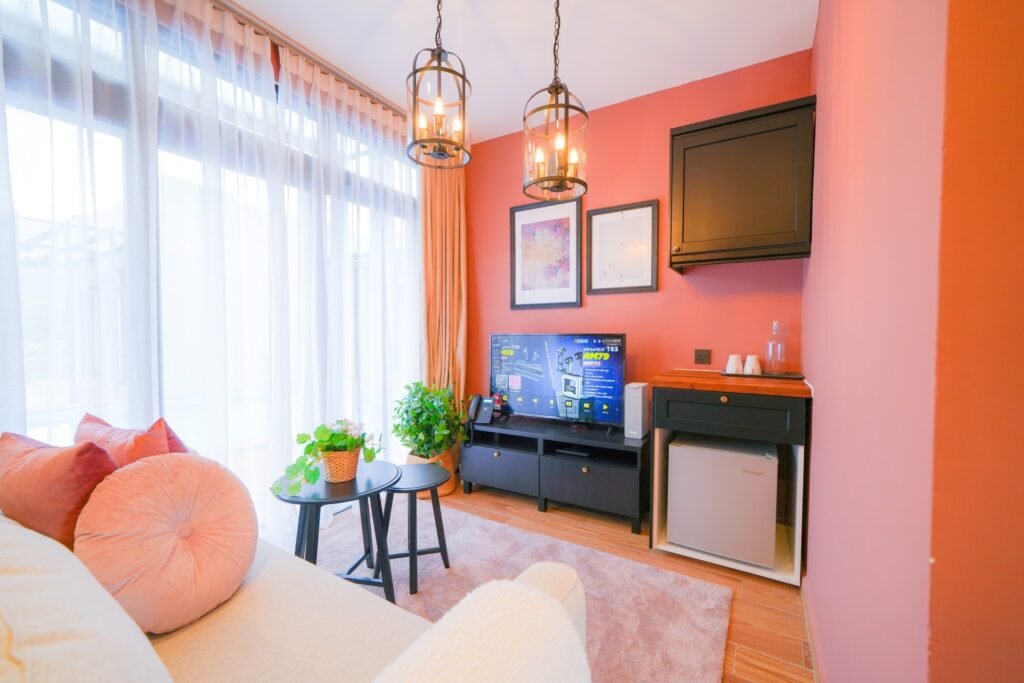 Our Hangouts Studio Suite in Corsica is a hidden gem. With a chic interior designed by IKEA Malaysia, full pantry amenities, a spacious room that can fit 4 guests, a beautiful bathroom, TV living hall, and a sofa bed that can accommodate 4 pax, you’ll have everything you need for a comfortable stay. And when you want to cool off, you can jump straight into the plunge pool and enjoy the stunning surroundings.