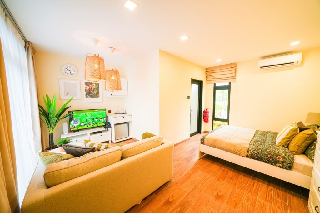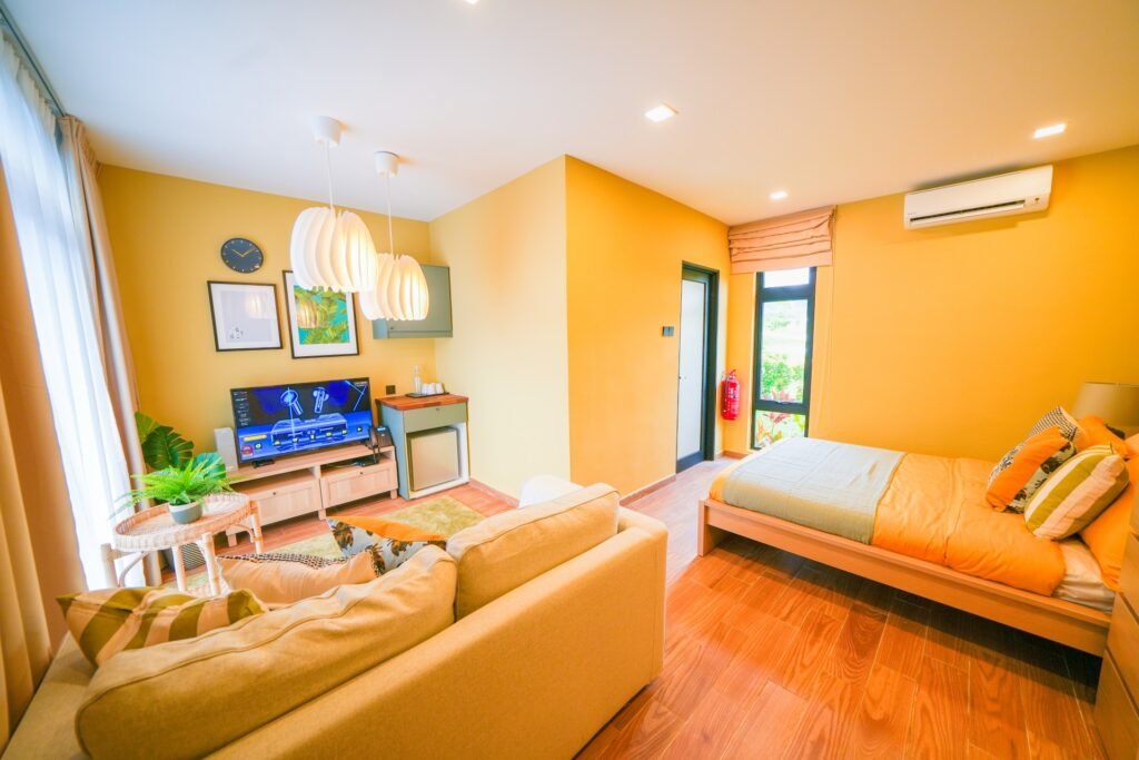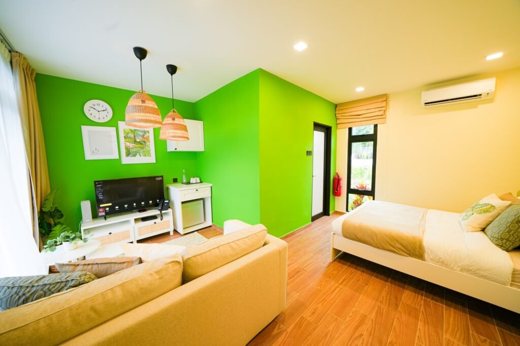 Our Hangouts Studio Suite in Galapagos Island is a unique experience. With an eclectic interior designed by IKEA Malaysia, full pantry amenities, a spacious room that can fit 4 guests, a beautiful bathroom, TV living hall, and a sofa bed that can accommodate 4 pax, you’ll feel like you’re on an adventure. And when you want to relax, you can jump straight into the plunge pool and immerse yourself in the beautiful natural surroundings.