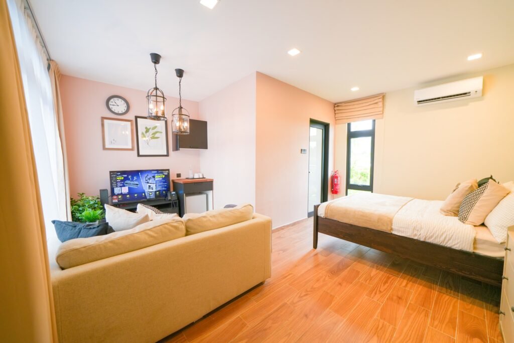 Our Hangouts Studio Suite in Cook Island is a tropical paradise. With a bright and airy interior designed by IKEA Malaysia, full pantry amenities, a spacious room that can fit 4 guests, a beautiful bathroom, TV living hall, and a sofa bed that can accommodate 4 pax, you’ll feel like you’re living in a postcard. And when you want to take a break from the sun, you can jump straight into the plunge pool and bask in the cool waters.